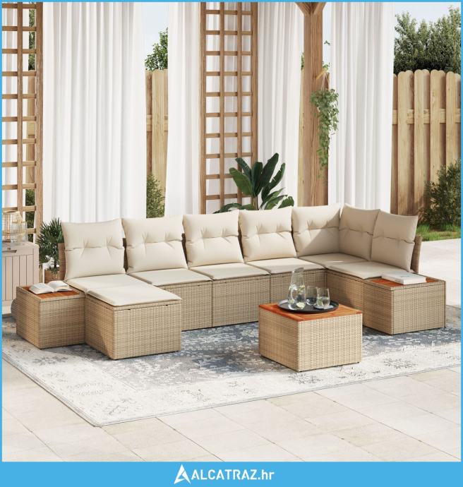 8-dijelni vrtni kauč set s jastučićima bež poli ratan akacija - NOVO