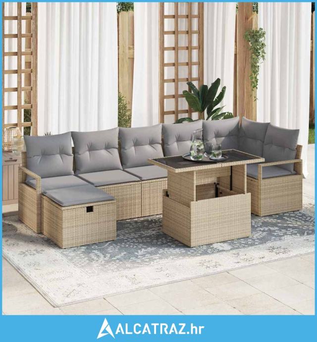 - Uključuje osnovne komponente: Ovaj 8-dijelni set ima sve osnovne elemente za udobno sjedenje, s dva kauča, praktičnim stolom, okruglim stolicama i dodatnim jastučićima za još veću udobnost.