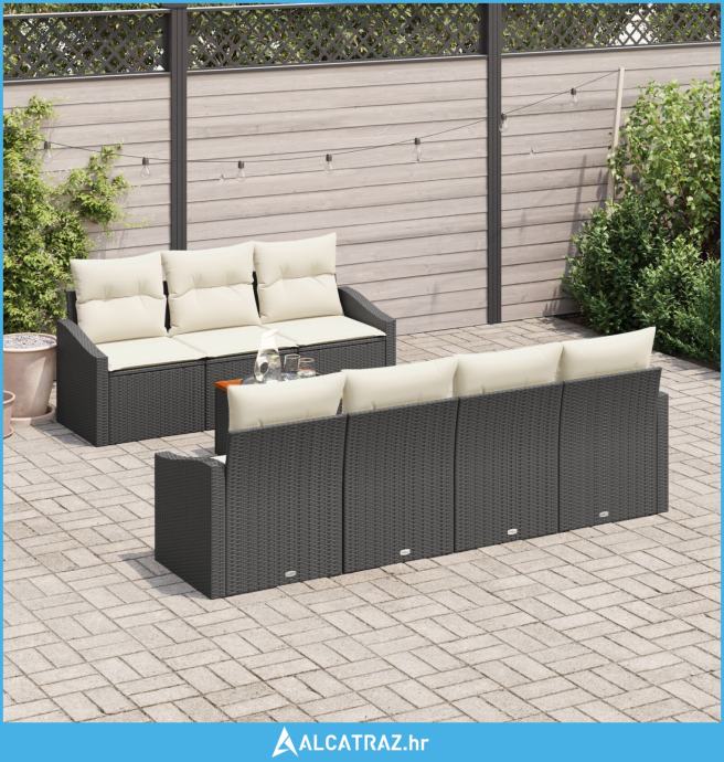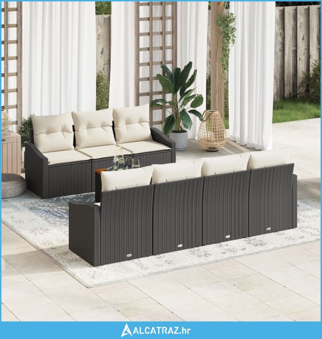 8-dijelni vrtni set sofe s jastučićima crni poli ratan akacija - NOVO