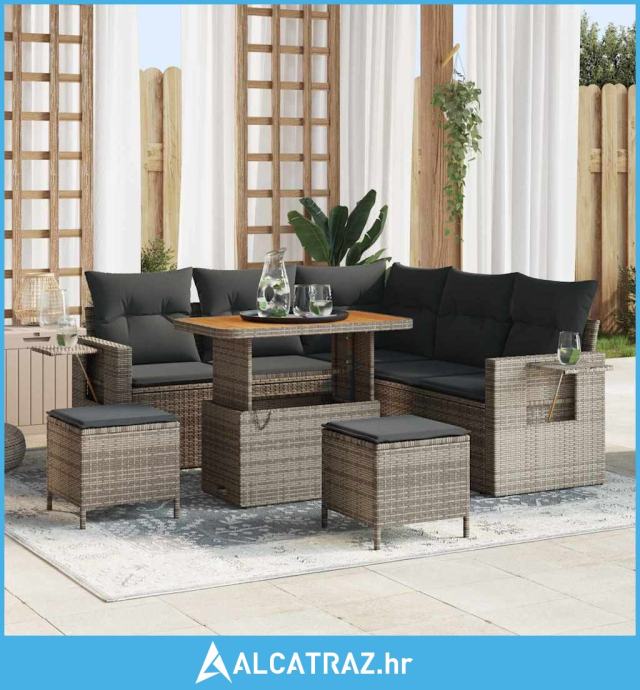 8-dijelni vrtni set za sofu s jastučićima sivi poli ratan akacija - NO