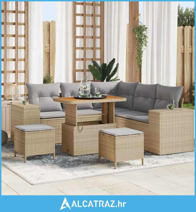 8-dijelni vrtni sofa set s jastučićima Bež Poli ratan Akacija, 3-dijel