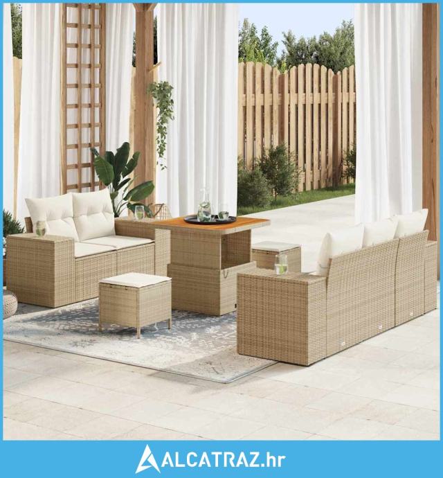 8-dijelni vrtni sofa set s jastučićima bež poli ratan akacija - NOVO
