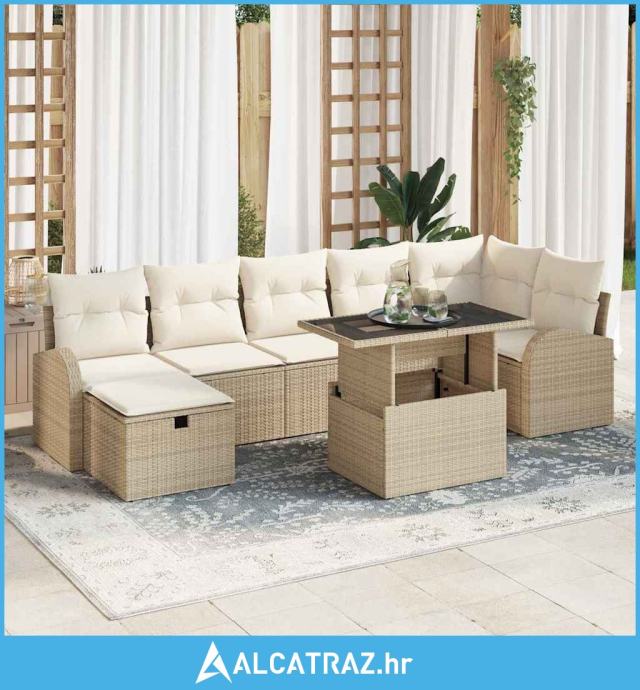Ovaj osmodijelni vrtni sofa set će uljepšati tvoj vanjski prostor. Ima moderan izgled s bež poli ratanom i krem bijelim jastučićima. Bez obzira sjediš li na balkonu, terasi ili u vrtu, ovaj set ne samo da super izgleda, već pruža i ugodan kutak za opuštanje, razgovor ili zabavu s prijateljima.