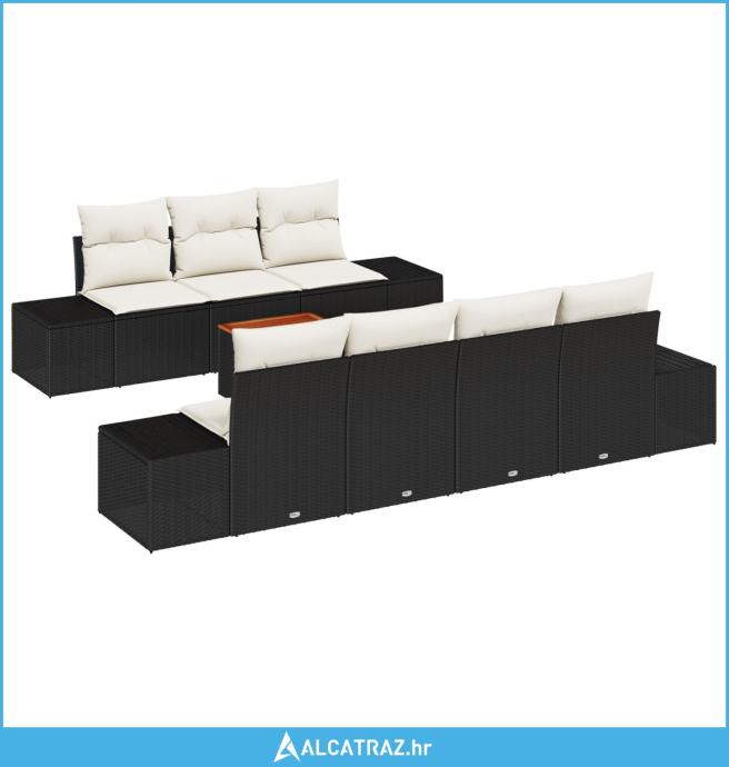 8-dijelni vrtni sofa set s jastučićima crni poli ratan akacija - NOVO