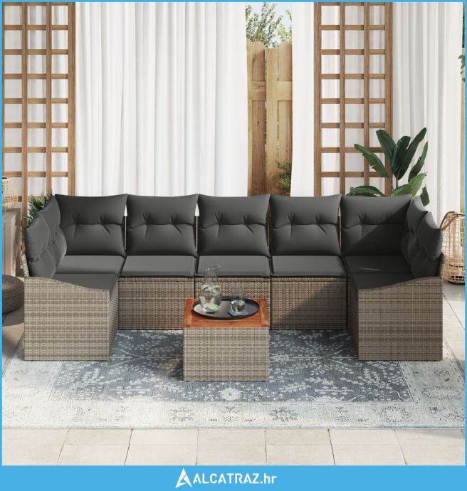 8 Dijelni Vrtni Sofa Set s Jastučićima Sivi Poli Ratan Akacija - NOVO