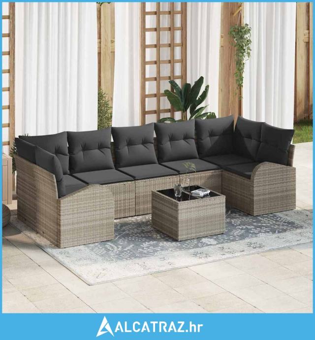 8-dijelni vrtni sofa set s jastučićima svjetlosivi poly ratan, 2-sjeda
