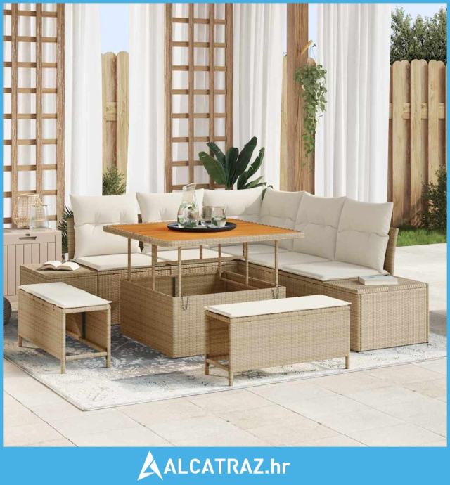 8 Dijelni Vrtni Sofe Set s Jastucima Bež Poli Ratan Akacija - NOVO