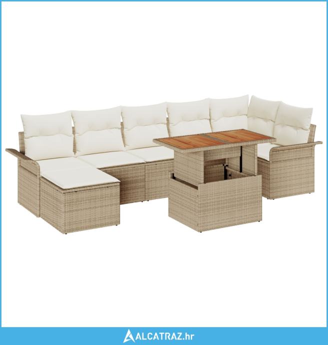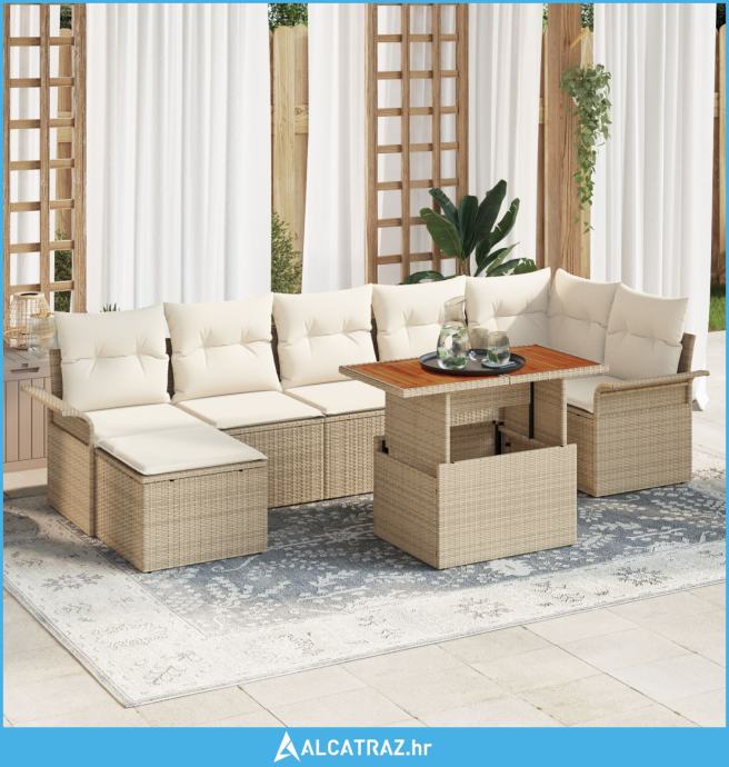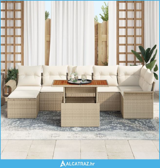 8-dijelni Vrtni Stolni Set s Jastučićima Bež Poli Ratan Akacija - NOVO