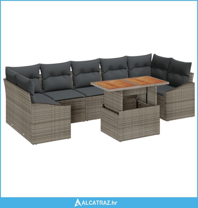 8 Dijelni Vrtni Stolni Set S Jastučićima Siva Poli Ratan Akacija - NOV