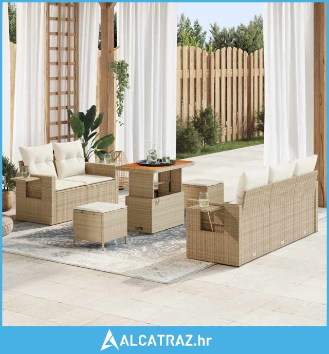 8 kom set za dnevni boravak u vrtu s jastučićima bež poli ratan akacij