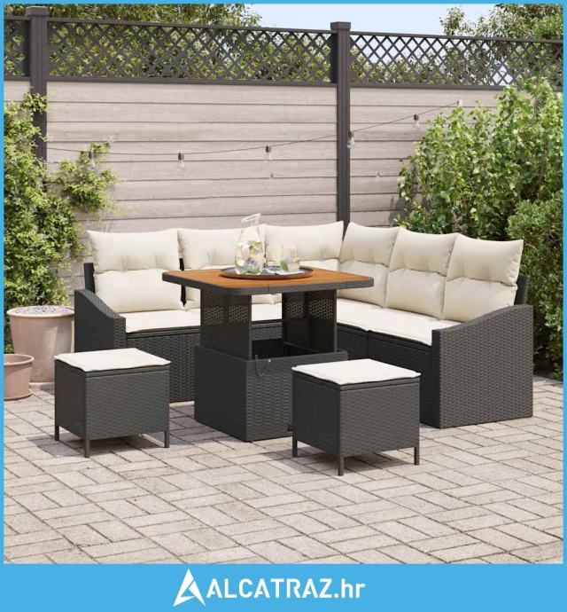 8 komada vrtni kauč set s jastučićima crni poli ratan akacija - NOVO
