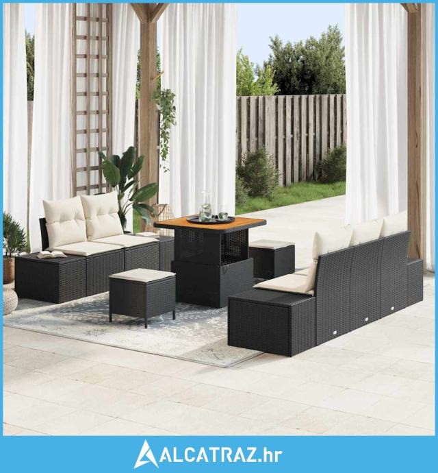 8 komada vrtni sofa set s jastučićima crni poliratan akacija - NOVO