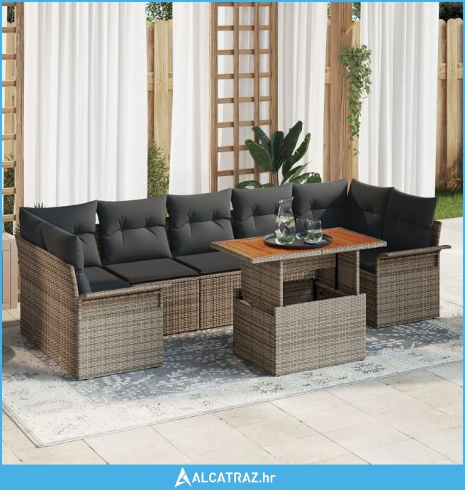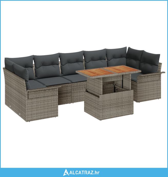 8-komadni vrtni kauč set s jastučićima Sivi Poli Ratan Akacija - NOVO