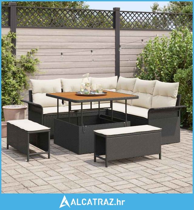 8 komadni vrtni sofa set s jastučićima crni poli ratan akacija - NOVO