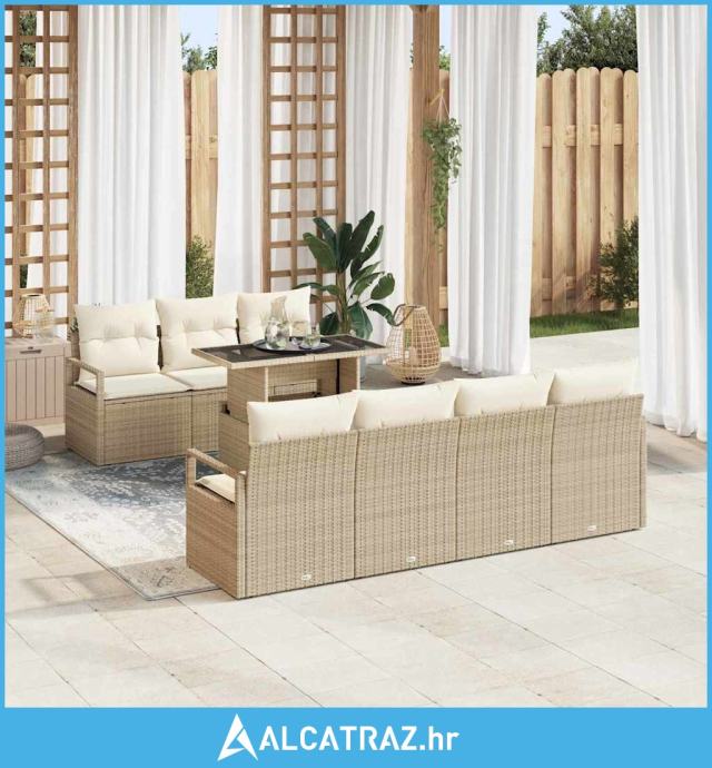 8-kompletni set baštenskih kauča s jastučićima bež poli ratan - NOVO