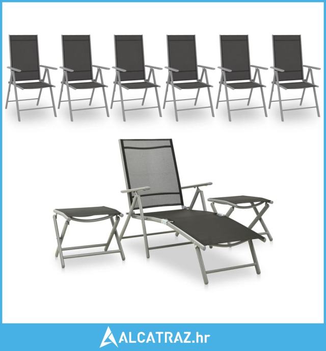 Ovaj set vanjskog namještaja napravljen je od aluminijskih okvira, zbog čega je lagan i lak za nošenje. Sjedala od prozračnog tekstila su udobna. Zahvaljujući podesivom naslonu za leđa sa 7 položaja, uvijek možete pronaći najudobniji položaj. Oslonci za noge odlični su za podizanje nogu, a služe i kao dodatne sjedalice za djecu. Kad se ne upotrebljava, svaki komad može se lako sklopiti radi uštede prostora.