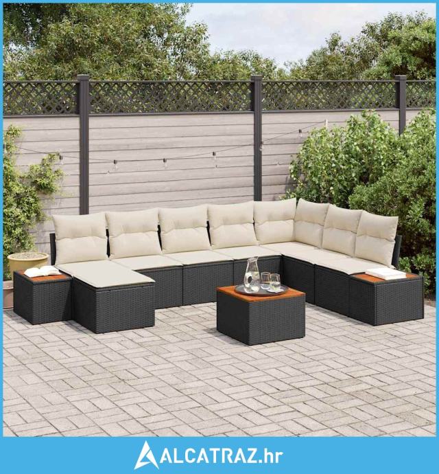9-dijelna vrtna garnitura s jastučićima crni poli ratan akacija - NOVO