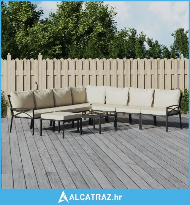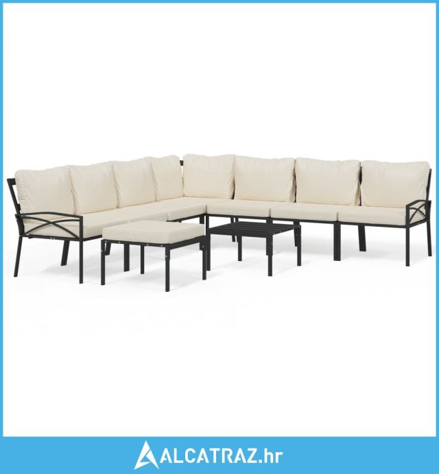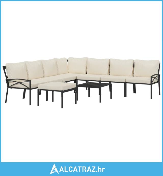 9-dijelna vrtna garnitura s jastucima boje pijeska čelična - NOVO