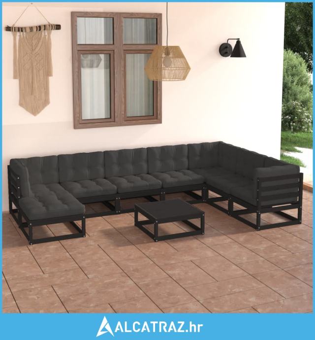 9-dijelna vrtna garnitura od masivne borovine s jastucima - NOVO