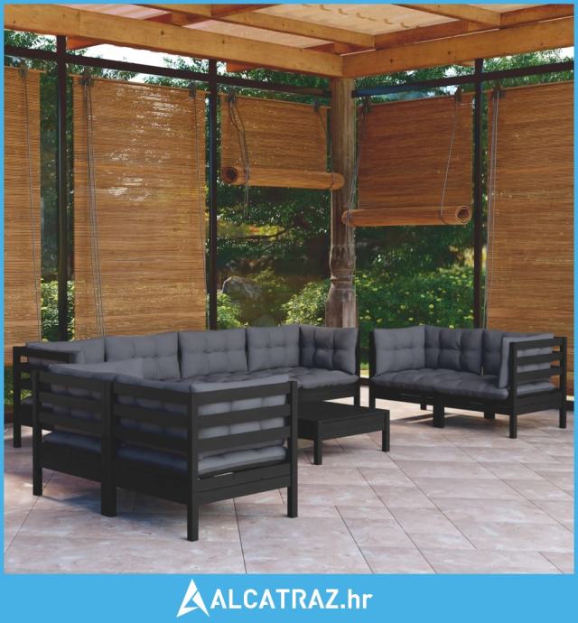 9-dijelna vrtna garnitura od masivne borovine s jastucima - NOVO