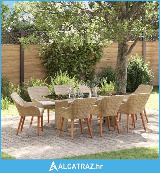 Ovaj blagovaonski set za vrt spaja moderan izgled s praktičnim dizajnom, savršeno za vanjske obroke. Ima chic bež poli ratan boju i elegantni stakleni vrh koji dodaje dašak stila svakom balkonu ili patiju, potičući tvoju obitelj i prijatelje da uživaju u obrocima sa stilom.