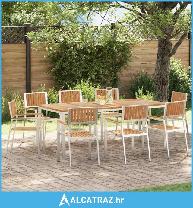 Ova blagovaonska garnitura u vrtu dolazi s velikim pravokutnim stolom i osam udobnih stolica od čvrste tikovine. Savršena je za vanjsko zabavljanje i stvara ugodnu atmosferu za obitelj i prijatelje da uživaju u obrocima na vašem balkonu, terasi ili u vrtu.