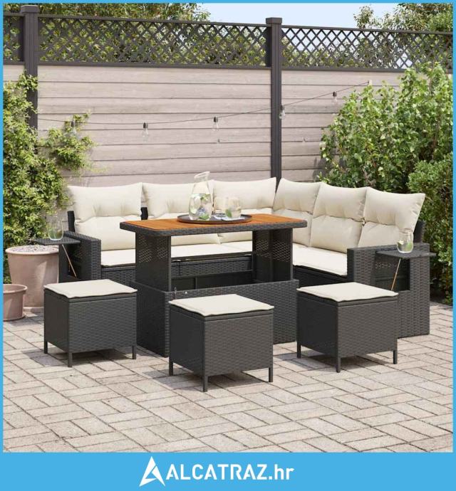 9-dijelni set dvorišnog kauča s jastučićima Crni Poli Ratan Akacija -