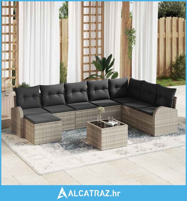 9-dijelni set kauča za vrt s jastučićima sivo poli ratan, 2-sjedalni k