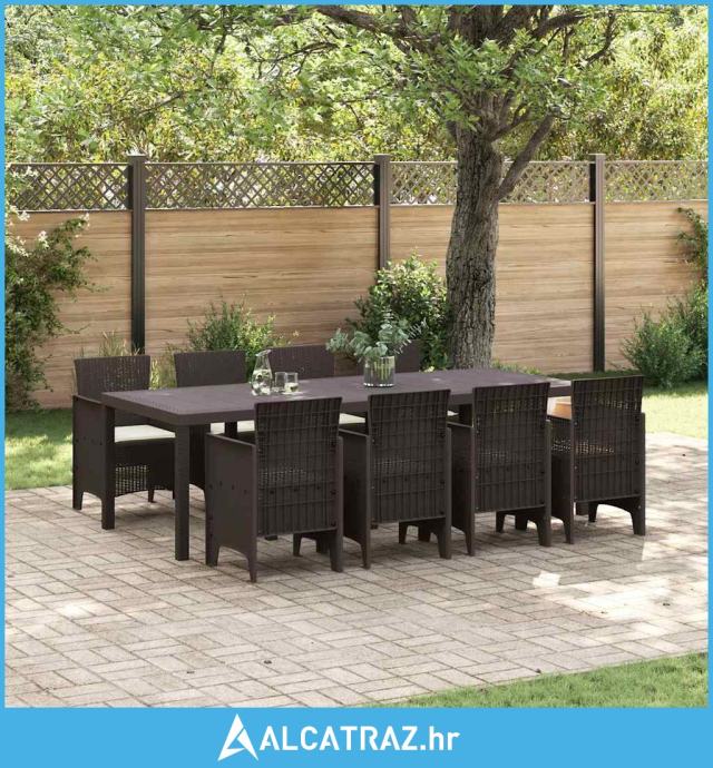 9-dijelni set za objedovanje s jastučićima smeđi poliratan - NOVO