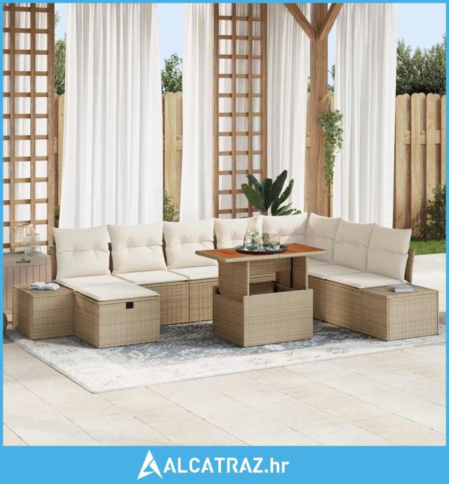 9-dijelni set za objedovanje u vrtu s bež jastučićima, poliratan, akac
