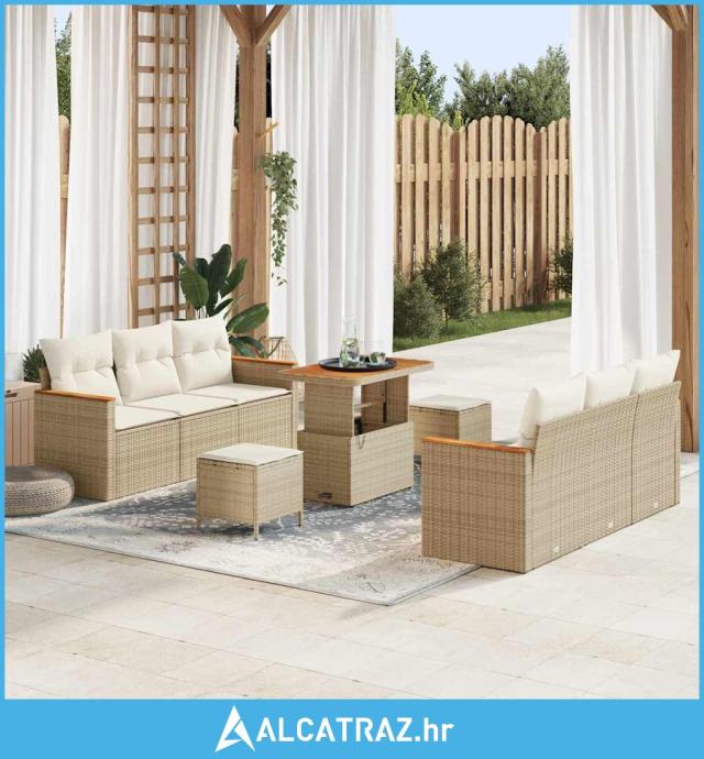 9-dijelni set sofe za vrt s jastučićima, bež poli ratan, masivni. - NO