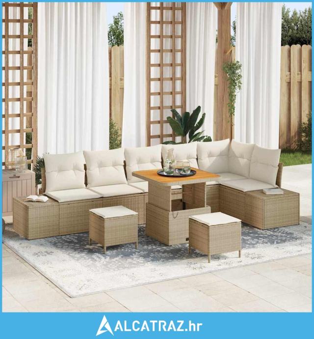 9-dijelni set sofe za vrt s jastučićima bež poliratan akacija - NOVO