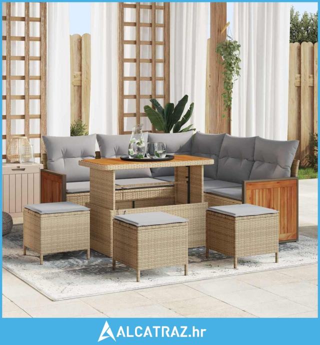 9-dijelni set vrtne sofe s jastučićima bež poli ratan akacija, 2-sjeda