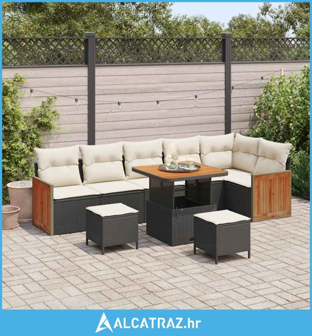 9-dijelni set vrtne sofe s jastučićima crni poli ratan akacija, 2-sjed