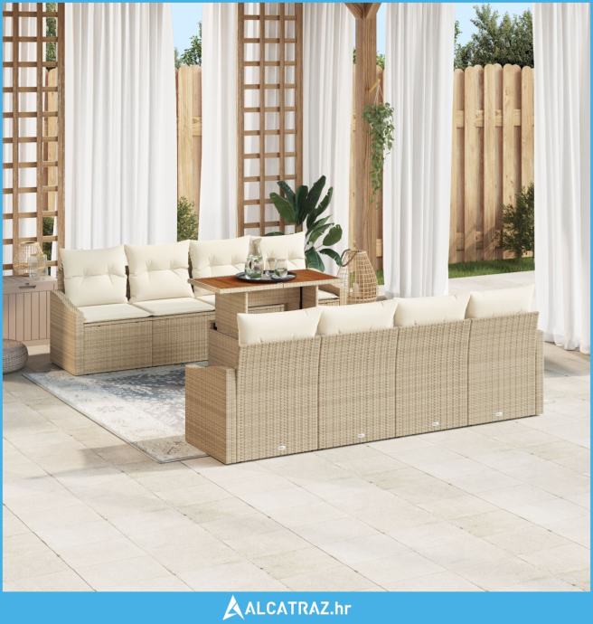 9-dijelni set vrtne stolice s jastučićima Bež poli ratan akacija - NOV