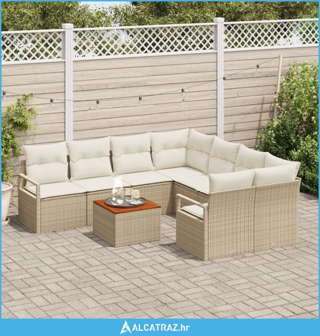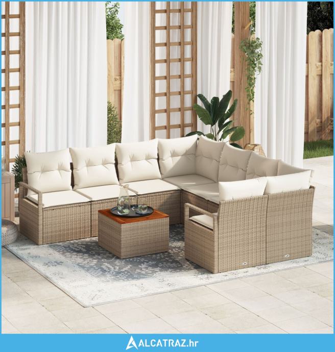 9-dijelni set vrtnih sofa s jastučićima bež poli ratan akacija, sofa z