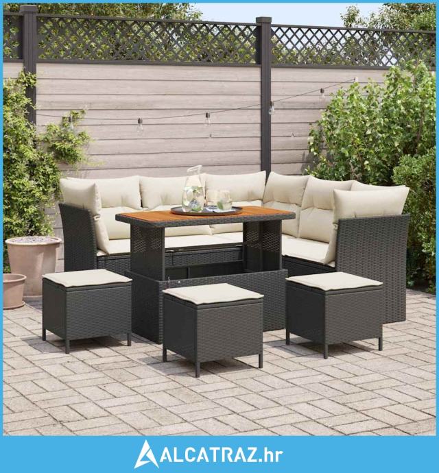 9-dijelni set vrtnih sofa s jastučićima crni poli ratan akacija - NOVO