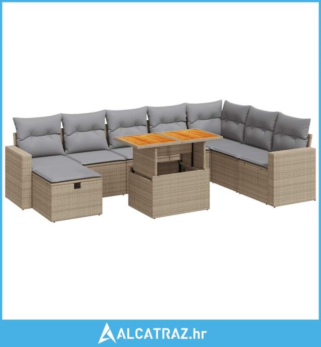 9-dijelni set vrtnih sofa s jastucima bež od poliratana bagrem - NOVO