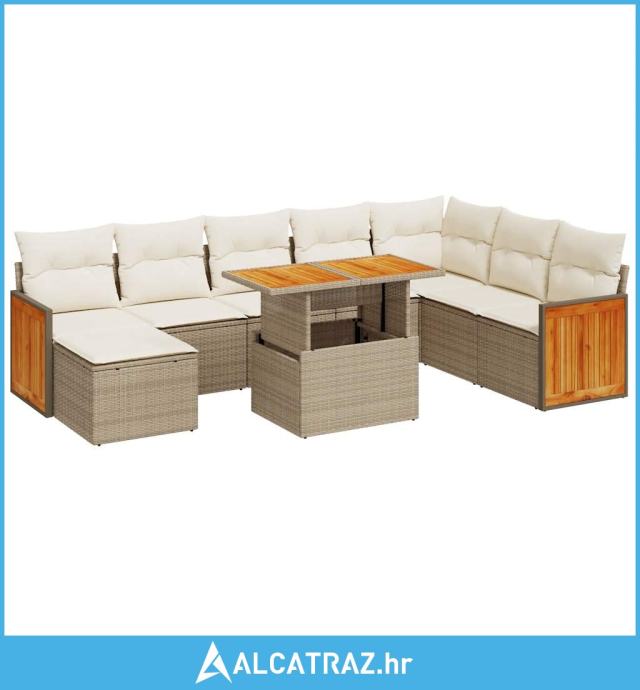 9-dijelni set vrtnih sofa s jastucima bež od poliratana bagrem - NOVO