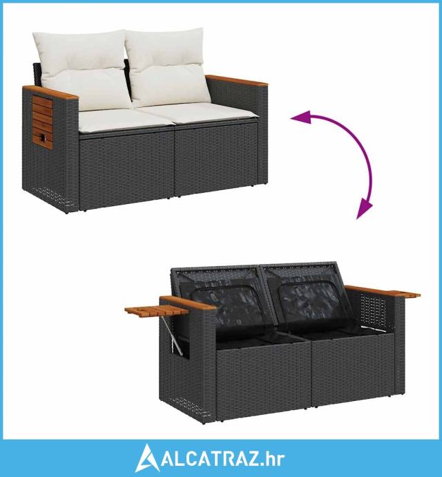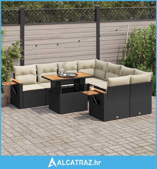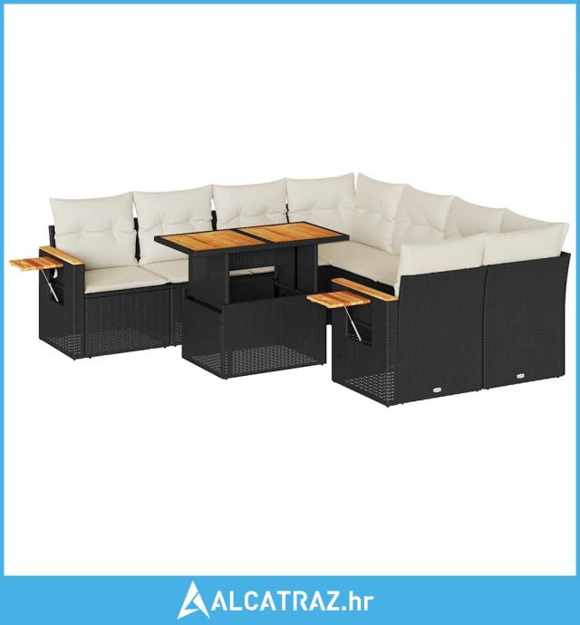 9-dijelni set vrtnih sofa s jastucima crni od poliratana bagrem - NOVO