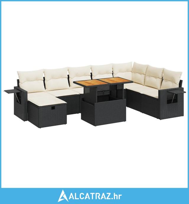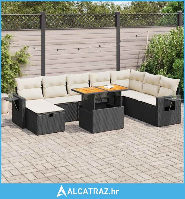 9-dijelni set vrtnih sofa s jastucima crni od poliratana bagrem - NOVO