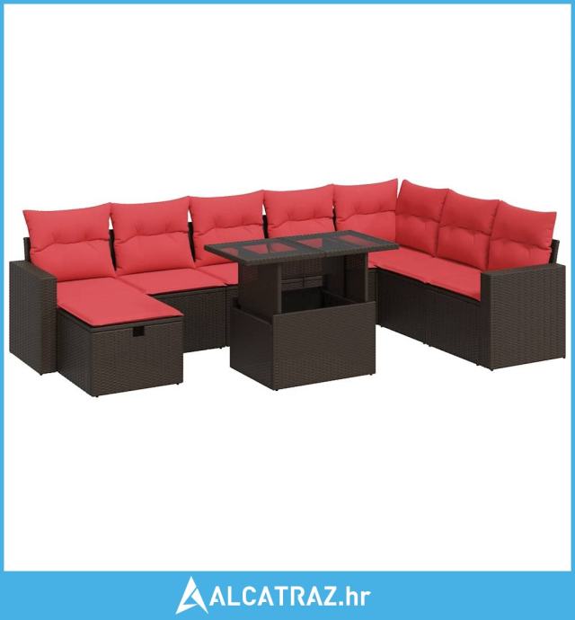 9-dijelni set vrtnih sofa s jastucima crni od poliratana bagrem - NOVO