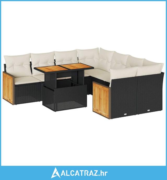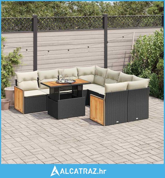 9-dijelni set vrtnih sofa s jastucima crni od poliratana bagrem - NOVO
