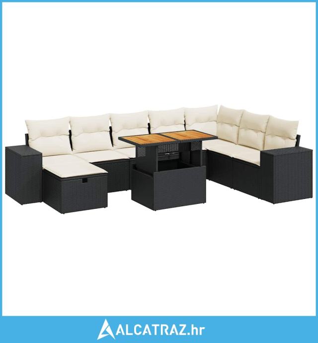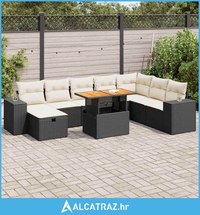 9-dijelni set vrtnih sofa s jastucima crni od poliratana bagrem - NOVO