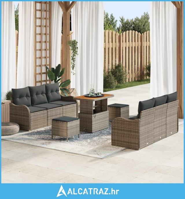 9-dijelni set vrtnih sofa s jastucima Siva Poly Ratan Acacija, sofa za