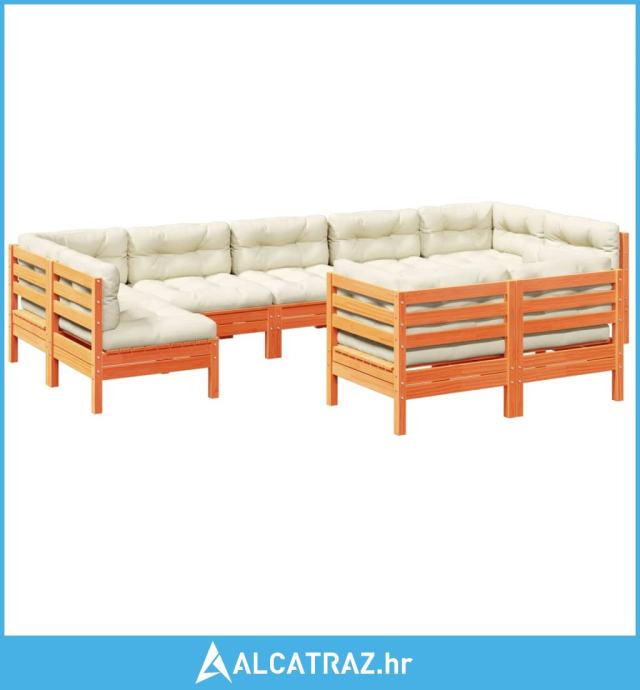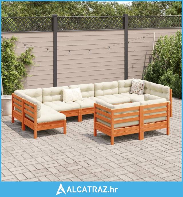 9-dijelni set vrtnih sofa s jastucima voštano smeđi od borovine - NOVO