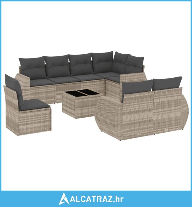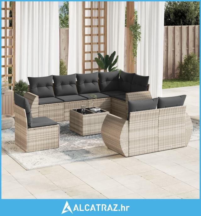 9-dijelni set vrtnih sofa od poliratana s jastucima svjetlosivi - NOVO