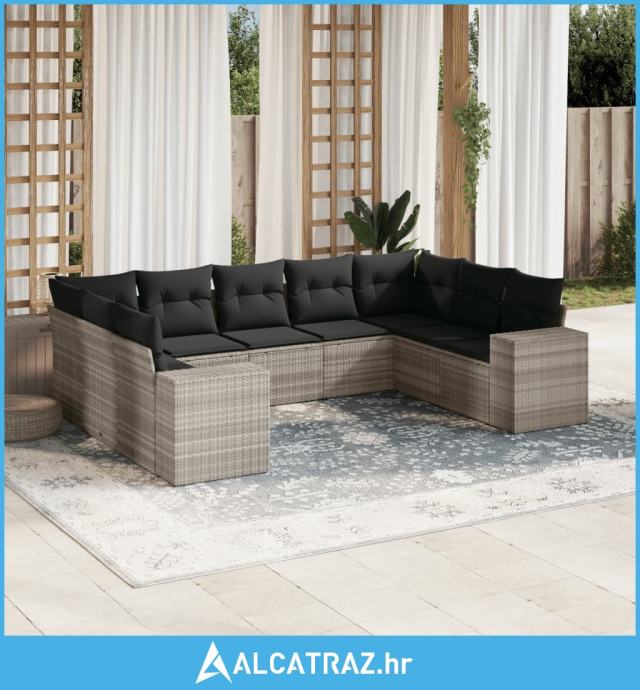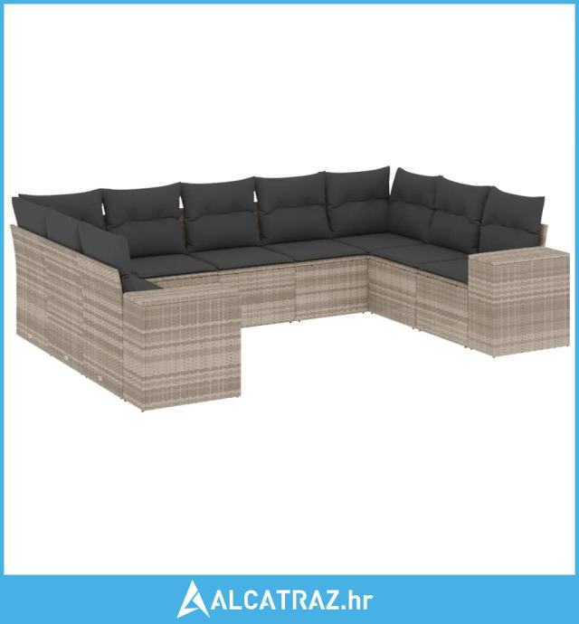 9-dijelni set vrtnih sofa od poliratana s jastucima svjetlosivi - NOVO
