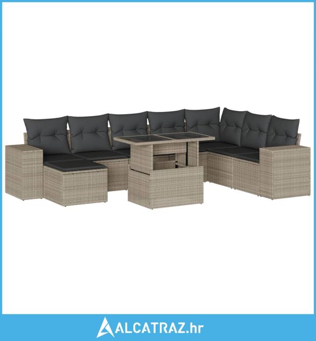 9-dijelni set vrtnih sofa od poliratana s jastucima svjetlosivi - NOVO