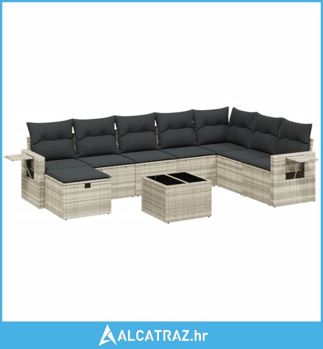 9-dijelni set vrtnih sofa od poliratana s jastucima svjetlosivi - NOVO